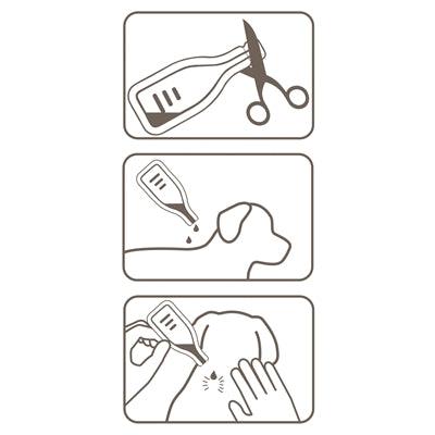 • Nach dem Öffnen kann die Pipette abgelegt werden, sodass die Haut des Hundes vor der Verabreichung der Pipette mit beiden Händen gründlich gereinigt werden kann.