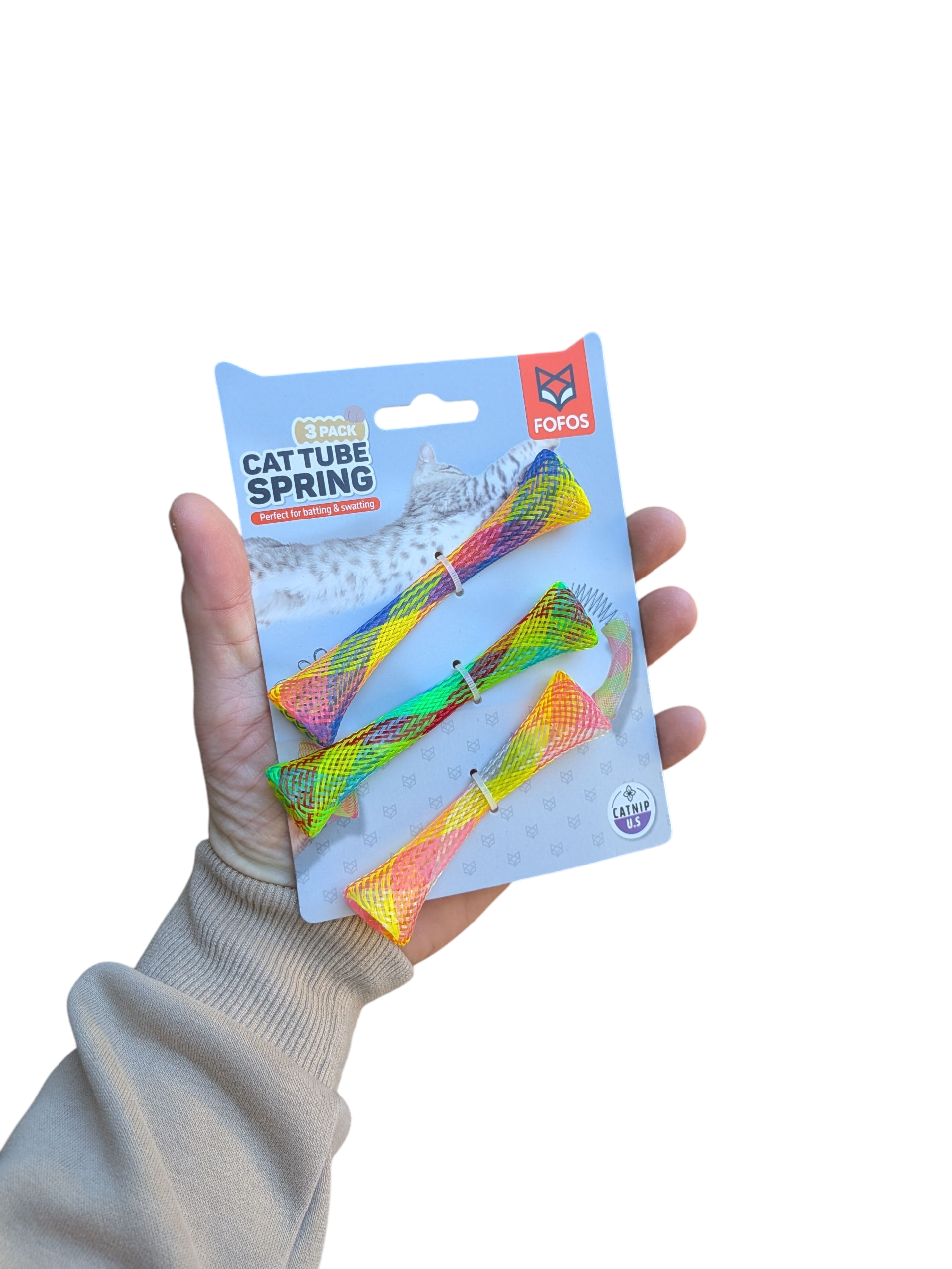 Die Fofos Spring Tube 10X1,5X1,5 cm (3 Stück) ist ein lustiges Katzenspielzeug aus Nylon mit Katzenminze. Diese originellen Katzenspielzeuge bestehen aus Nylonröhren, die abprallen können, um Ihre Katze herauszufordern. Drücken Sie die Spring Tubes gegen den Boden oder Ihre Handfläche, und das Spielzeug springt ab und fordert Ihre Katze heraus, ihm hinterherzujagen. Die Spielzeuge bestehen aus Nylon und sind in verschiedenen fröhlichen Farben erhältlich. In der Röhre befindet sich ein Beutelchen Katzenminze.