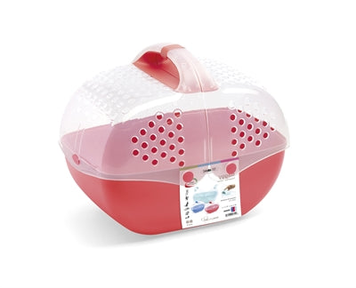 Nehmen Sie Ihr Meerschweinchen, Ihren Hamster, Ihr Chinchilla oder ein anderes Kleintier in dieser farbenfrohen Transportbox mit. Die Oberseite der Box lässt sich wie eine Handtasche öffnen: Einfach die Hälften auseinanderklicken. Zum Schließen die Hälften zusammenstecken und den Sicherheitsclip einklicken. Jetzt können Sie Ihr Kleintier mitnehmen.