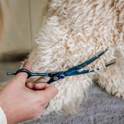 - Gebogene Schere zum Trimmen des Fells zu Hause