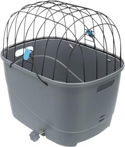 Dieser robuste Fahrradkorb aus strapazierfähigem Kunststoff bietet einen stabilen Stand und ist leicht zu reinigen. Die mitgelieferte Netzkuppel mit Klapperschutz hält Ihren Hund sicher im Korb und verhindert, dass er unerwartet herausspringt. Wünschen Sie zusätzliche Sicherheit? Optional können Sie eine kurze Leine an der Innenseite des Korbes befestigen.
