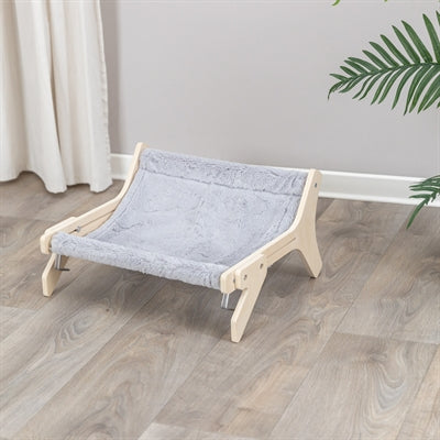 Die Trixie Hängematte aus unbehandeltem grauem Holz bietet Ihrer Katze einen luxuriösen und bequemen Ruheplatz mit vielseitigen Befestigungsmöglichkeiten. Diese stilvolle Hängematte kann freistehend verwendet oder dank der verstellbaren Halterungen einfach an einem Bettgestell oder einer Heizung befestigt werden. Die Halterung ist kunststoffbeschichtet und mit Filzgleitern versehen, um Ihre Möbel vor Kratzern und Abnutzung zu schützen. Der abnehmbare Bezug ist leicht zu reinigen, und die Hängematte hat eine Tragkraft von bis zu 12 kg und ist für Katzen jeder Größe geeignet.