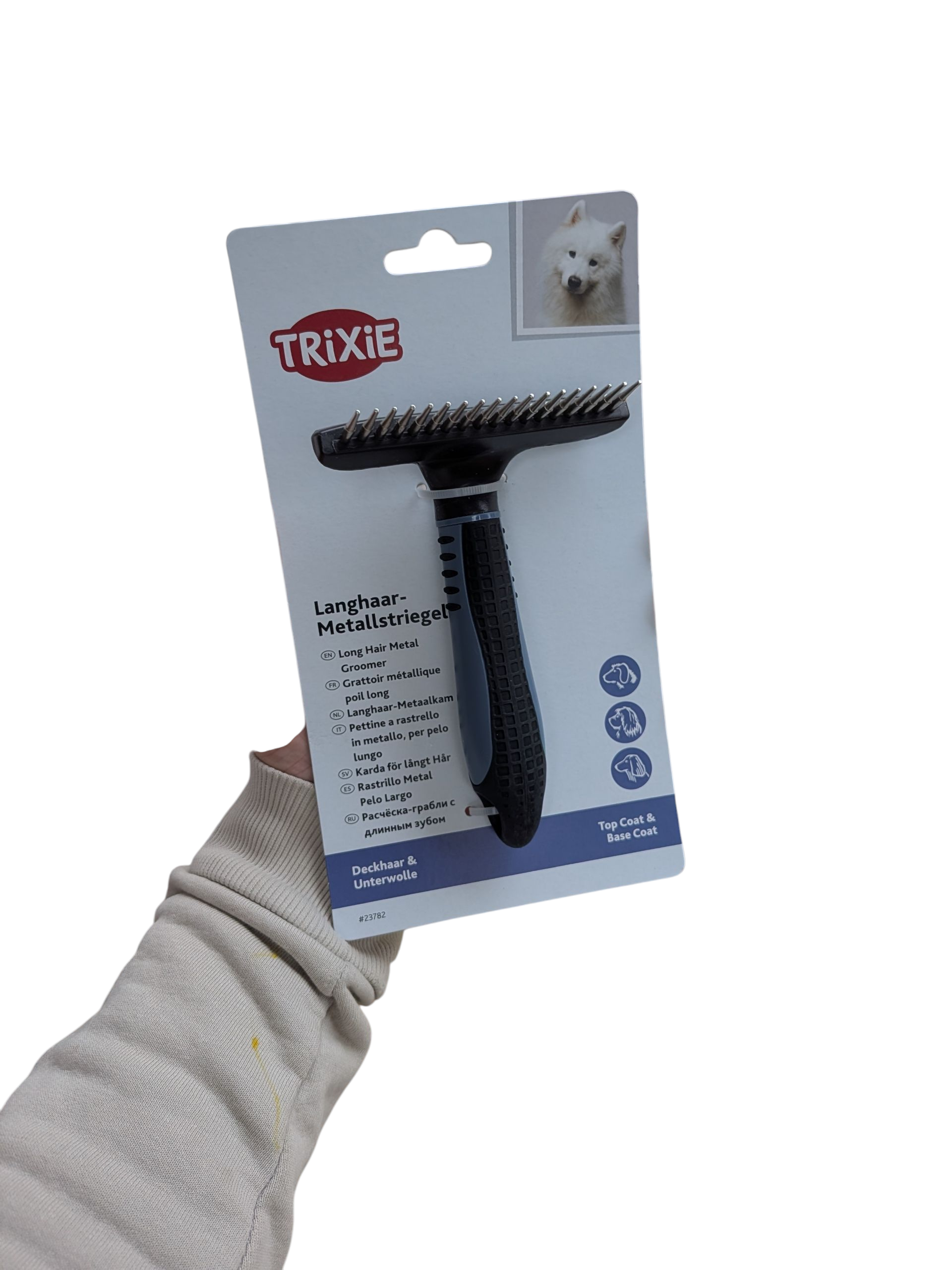 Dieser Metallkamm eignet sich zur intensiven Pflege der Unterwolle von Hunden mit langem Haar.